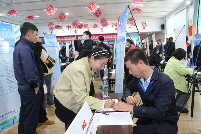 求职人员填写就业意向登记表。于舰勐摄